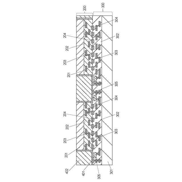 前記第2配線構造は、前記第2金属パターンと同じ高さに配された第3金属パターンを有するガード構造を含み、