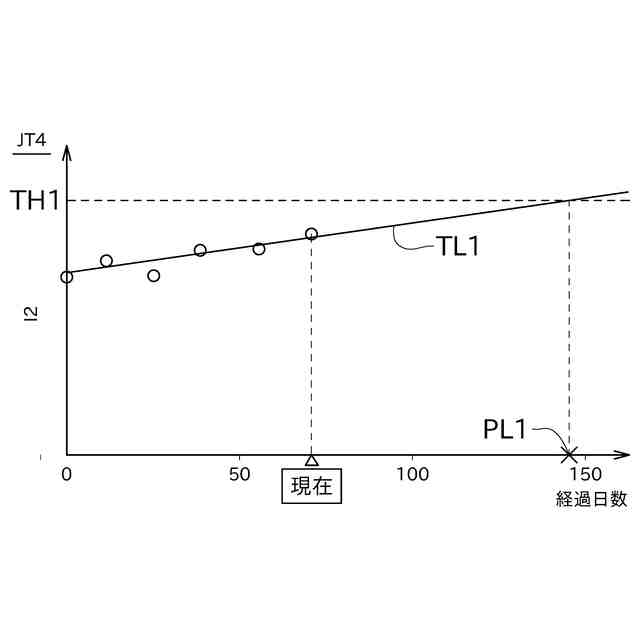 前記評価値が時間の経過に伴って変化する傾向を表すトレンドラインを作成して、当該トレンドラインが所定の寿命閾値に到達するタイミングを予測寿命タイミングとして求める寿命推定部と、