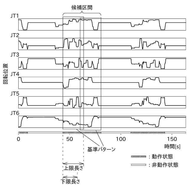 前記基本データとマッチングした時間区間の前記ロボットの状態を反映する各軸の状態信号の時系列データを取得する時系列データ取得部と、