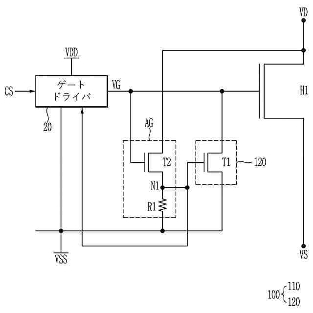 前記高電子移動度トランジスタのゲート電圧(VG)と前記高電子移動度トランジスタのドレイン電圧に基づいて、短絡保護電圧を出力する短絡検出回路(110)と、