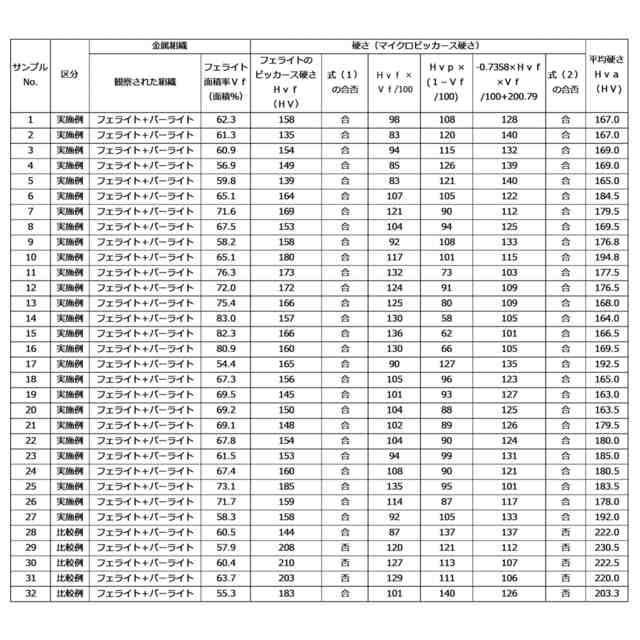 ここで、Hvfはフェライトのビッカース硬さであり、Hvpはパーライトのビッカース硬さであり、Vfはフェライトの面積率である。