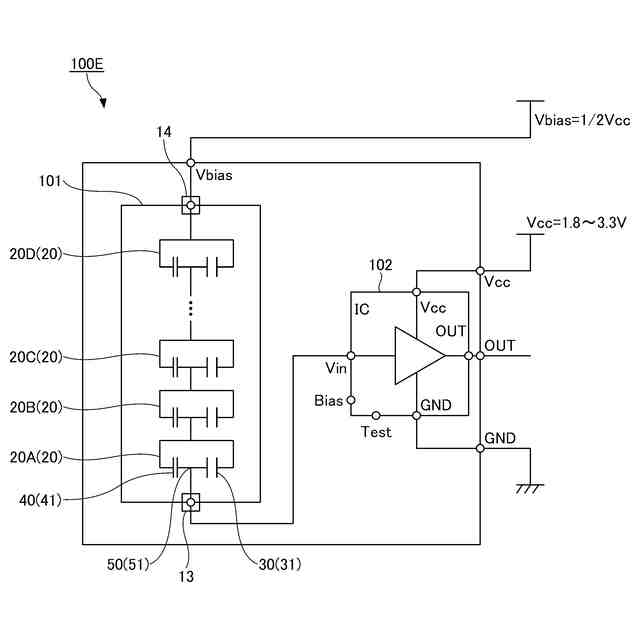 図1~図3に示す音響変換装置100は、圧電素子(圧電膜)を有する圧電式の音響変換装置である。音響変換装置100は、例えばマイクロフォン(MEMSマイク)でもよい。音響変換装置100は、ノイズキャンセルの用途に使用されるものでもよい。音響変換装置100は、TWS(Ture wireless stereo)でもよく、自動車に搭載される車載の装置でもよい。音響変換装置100は、例えば補聴器として使用されるものでもよい。音響変換装置100は、物理量を検出可能であれば、よく、用途は特に限定されない。物理量は、例えば音圧でもよい。