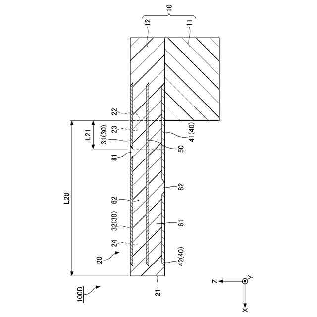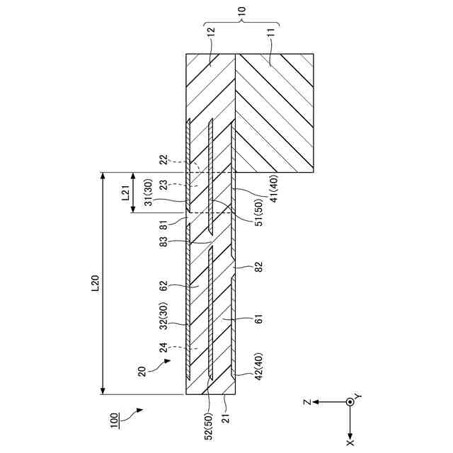 以下、実施形態に係る音響変換装置について、添付の図面を参照しながら説明する。尚、本明細書及び図面において、実質的に同一の構成要素については、同一の符号を付することにより重複した説明を省く場合がある。また、本明細書において、「上」及び「下」との用語を使用する場合がある。これは、図3に示されている状態における「上」及び「下」であり、Z軸方向において、上部電極30が配置されている方を「上」とし、下部電極40が配置されている方を「下」とする。実際の音響変換装置100の配置はこれに限定されない。