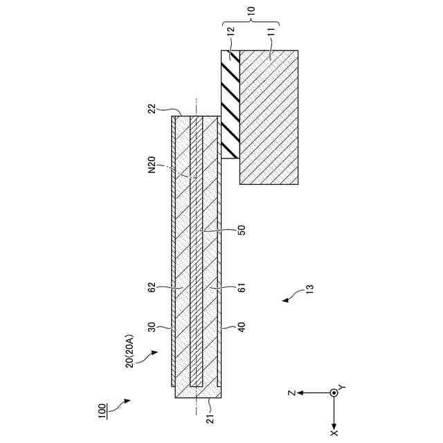 以下、実施形態に係る音響変換装置について、添付の図面を参照しながら説明する。尚、本明細書及び図面において、実質的に同一の構成要素については、同一の符号を付することにより重複した説明を省く場合がある。また、本明細書において、「上」及び「下」との用語を使用する場合がある。これは、例えば図2に示されている状態における「上」及び「下」であり、Z軸方向において、上部電極30が配置されている方を「上」とし、下部電極40が配置されている方を「下」とする。実際の音響変換装置100の配置はこれに限定されない。