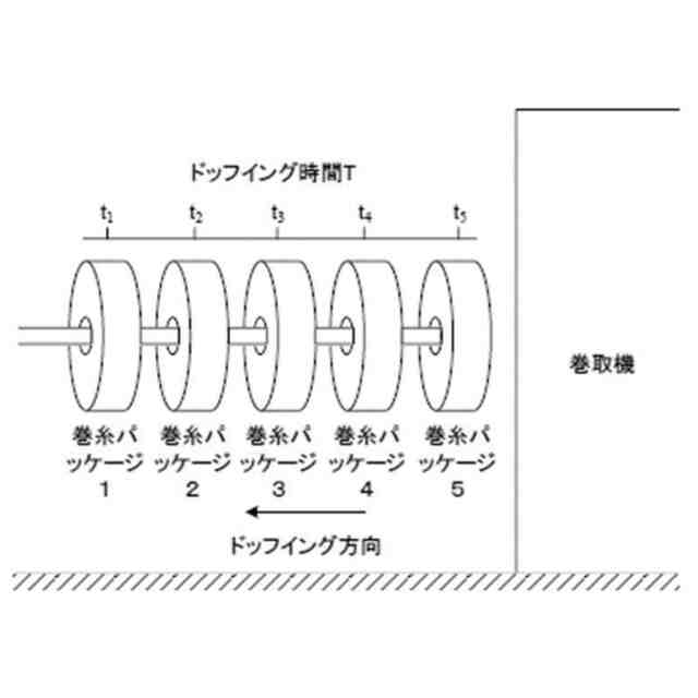 本開示の一実施例による巻糸パッケージのドッフイングを示す概略図である。