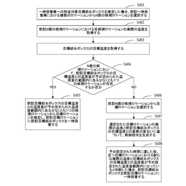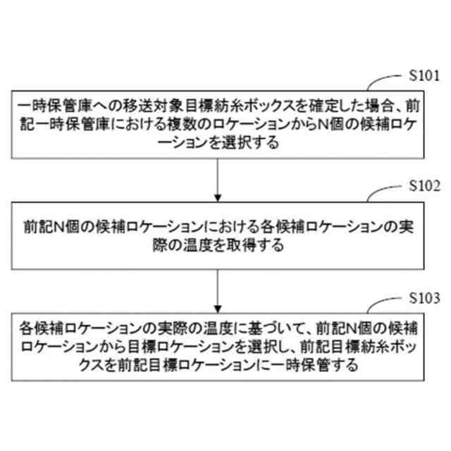 このように、本開示は、N個の候補ロケーションにおける各候補ロケーションの実際の温度に基づいて、N個の候補ロケーションから適切なロケーション(すなわち、目標ロケーション)を自動的且つインテリジェントに選択することができ、さらに前記目標紡糸ボックスを目標ロケーションに一時的に保存して冷却処理を行うことができる。これにより、前記目標紡糸ボックスを効果的に冷却することができ、しかも、従来技術における自然冷却に比べて、巻糸パッケージの品質に影響を与えないことを確保し、巻糸パッケージの冷却効率を向上させることができる。