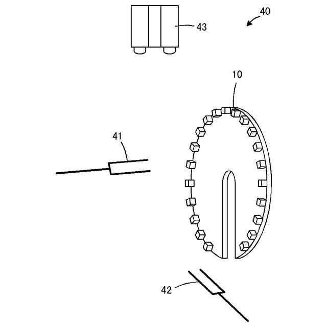 好ましくは、上記ケーブルセット領域を有するケーブル保持治具の前記保持部は、前記ケーブルセット領域から放射状に延びる直線上に配置され、前記ケーブルを前記ケーブルセット領域から放射状に外側に向かって延びるように保持する。