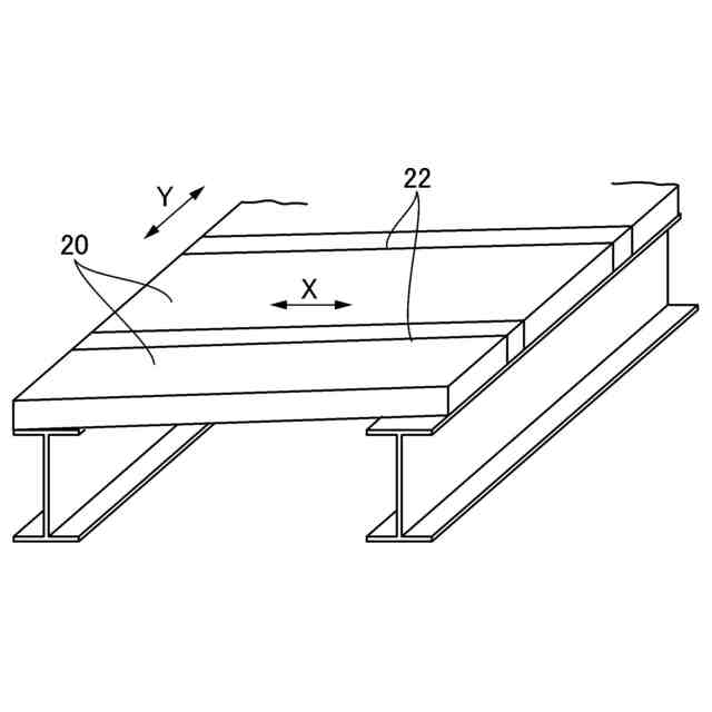 また、複数の橋桁に支持させて、橋軸方向に複数連設させた状態で設置されたプレキャストPC床版は、橋軸方向に隣接する各一対のプレキャストPC床版の間の長辺部分に沿った継手部に、鉄筋を配筋すると共にコンクリートを打設して、一体化されることになる。