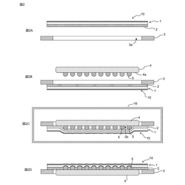 図2A~図2Dは、本発明の一実施形態に係る仮固定シート10を用いた半導体素子の製造方法を示す断面図である。