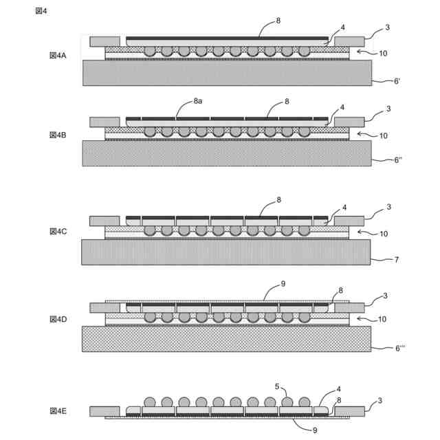 図4A~図4Eは、本発明の一実施形態に係る仮固定シート10を用いた半導体素子の製造方法を示す断面図である。