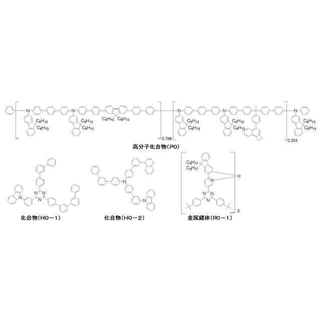 有機エレクトロルミネッセンス素子(以下、「発光素子」ともいう。)は、ディスプレイ及び照明の用途に好適に使用することが可能であり、研究開発が行われている。例えば、特許文献1には、下記式で表される高分子化合物(P0)を用いて形成された正孔輸送層と、下記式で表される化合物(H0-1)、化合物(H0-2)及び金属錯体(R1)を含有する発光層とを有する発光素子が記載されている。