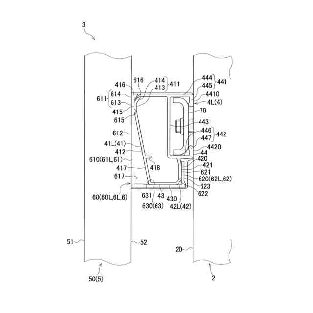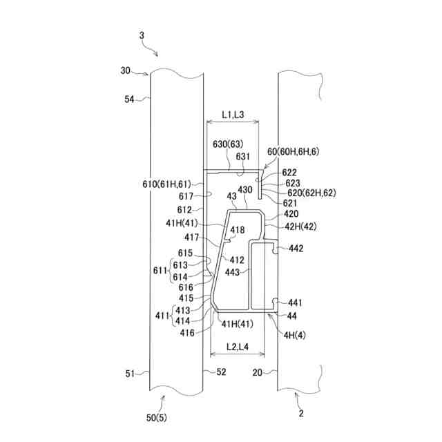 しかしながら、被係合部908a及び被係止部908bの見込み方向の厚みが、垂直壁910と係合部911a及び係止部911bとの距離よりも小さいため、被係合部908a及び被係止部908bと係合部911a及び係止部911bとが係合しても、垂直壁910と係合部911a及び係止部911bとの間に隙間ができる。これにより、胴縁901に対して縦格子902がガタつくという不具合があった。
