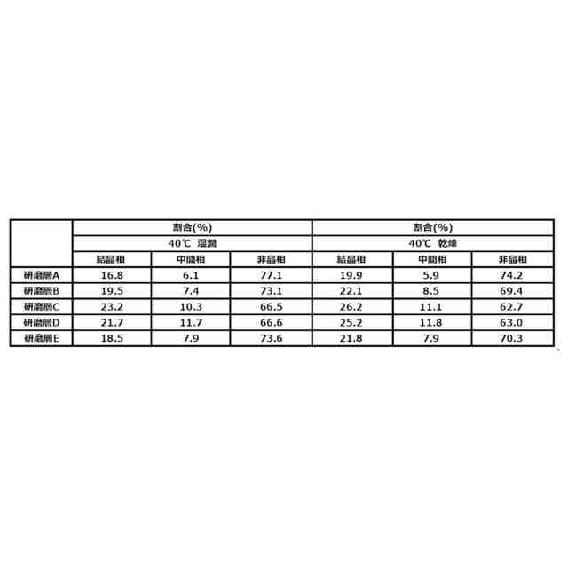 乾燥状態から湿潤状態に変化する際に、研磨層における結晶相、中間相、非晶相の含有割合の比の変化を制御することが出来、運動性が高い非晶相の割合が結晶相や中間層に比べて多くなり、研磨層が研磨中に適度に軟化すると考えられる。このような研磨層を備えた研磨パッドは、配線が混在する被研磨物においてトポ性能及び研磨レートに優れた研磨パッドである。
