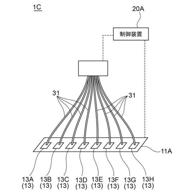 前記複数の光源のうち、選択された光源から光を発するように、前記複数の光源のそれぞれのオンオフを制御する制御装置を備える、