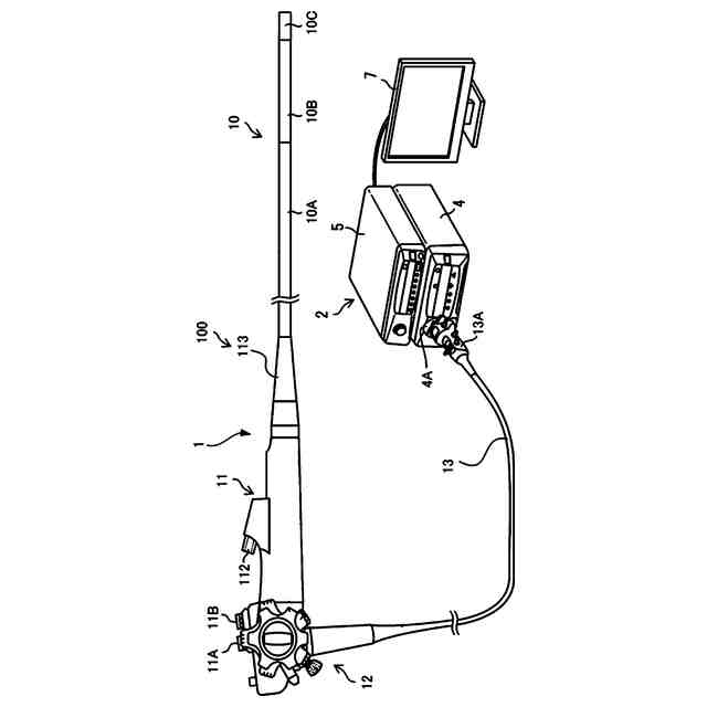 内視鏡1は、一方向に延びる長尺状の器具であって被検体内に挿入される挿入部10と、挿入部10の基端側に設けられた観察モード切替操作、撮像記憶操作、鉗子操作、送気送水操作、吸引操作、又は電気メス操作等を行うための操作部材が設けられた内視鏡操作部11と、内視鏡操作部11に隣接して設けられたアングルノブ12と、内視鏡1を光源装置4の接続部4Aに着脱自在に接続するコネクタ部13Aを含むユニバーサルコード13と、を備える。