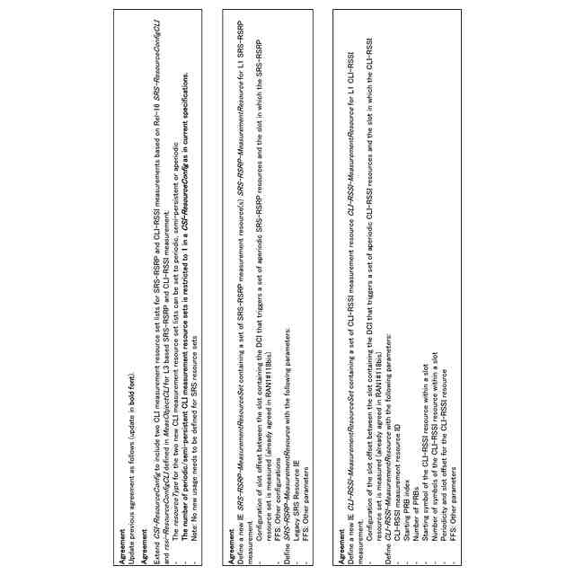 3GPP Rel-19において、L1 CLI-RSSI(Received Signal Strength Indicator)測定リソース及びL1 SRS-RSRP(Sounding Reference Signal - Reference Signal Received Power)測定リソースの導入が検討されている。ここで、L1-CLI報告(特にL1 SRS-RSRP測定)が、既存の測定報告(L1-RSPR/SINR(Signal-to-Interference-plus-Noise Ratio)報告)に非常に類似していることから、既存の測定報告と同様に、例えば、アクティブなL1 CLI測定リソースとポートの最大数が、端末能力による制限が必要となる可能性がある。
