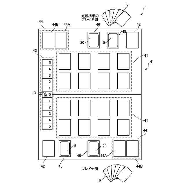 以下、図面を参照して、本発明の第1の実施形態に係るゲーム玩具について説明する。本発明は対戦ゲームに用いるゲーム玩具に係る発明であり、対戦ゲームはゲーム物品をプレイシートに配置することによりプレイヤと対戦相手のプレイヤとが対戦するラウンド制の対戦ゲームである。ラウンド制とは、1つのゲームが複数のラウンドから構成され、多くのラウンドで勝ったプレイヤを勝者とする対戦方式である。更に2つのゲームを先に勝ったプレイヤを対戦ゲームの勝者としてもよい。ゲーム物品にはキャラクターが対応付けられていてもよく、プレイシートにはゲーム物品を配置する複数の領域(エリア)が割り当てられている。ゲーム物品は複数の種類のゲーム物品があり、本実施形態において、例えば、対戦ゲームに関する情報を示す第1のゲーム物品及び第3のゲーム物品、並びに、対戦ゲームの各ラウンドの勝敗に関する情報を示す第2種類のゲーム物品がある。プレイヤはゲーム物品をプレイシートのいずれかの領域(エリア)に配置し、ゲーム物品に対応付けられているキャラクターが持つ能力(アビリティ)等を用いてゲームを実行する。本明細書においては、説明の便宜上、必要以上に詳細な説明は省略する場合がある。例えば、既によく知られた事項の詳細な説明や実質的に同一の構成についての重複説明を省略する場合がある。また、本明細書においては、用語「プレイヤ」と用語「ユーザ」とは同様の意味で用いられる場合がある。
