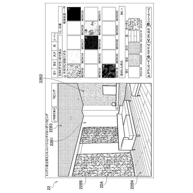 従来、インテリア空間の画像内の複数のインテリア用品(例えば、壁紙や天井材や床材等)の各々のデザインを選択するためのデザイン選択画面を表示し、デザイン選択画面においてユーザによって選択されたインテリア用品のデザインを含むインテリア空間の画像を表示する装置が知られている(例えば、非特許文献1参照)。
