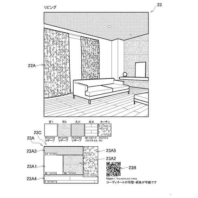 【課題】実際のインテリア空間において配置されたインテリア用品のデザイン23A1~23A5の組み合わせをイメージしやすくすること。
