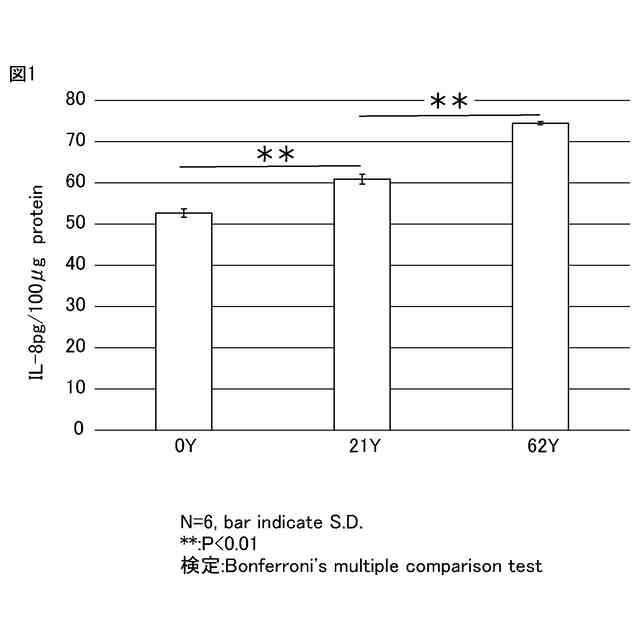 皮膚老化を抑制するために様々な方策が検討されている。老化にはSASP(senescence-associated secretory phenotype)と称される現象が関与することが報告されており、SASP因子としてIL-8,IL-6といったサイトカインが知られている(非特許文献1-3)。よって、IL-8を抑制する物質により皮膚老化を抑制できることが期待されている。