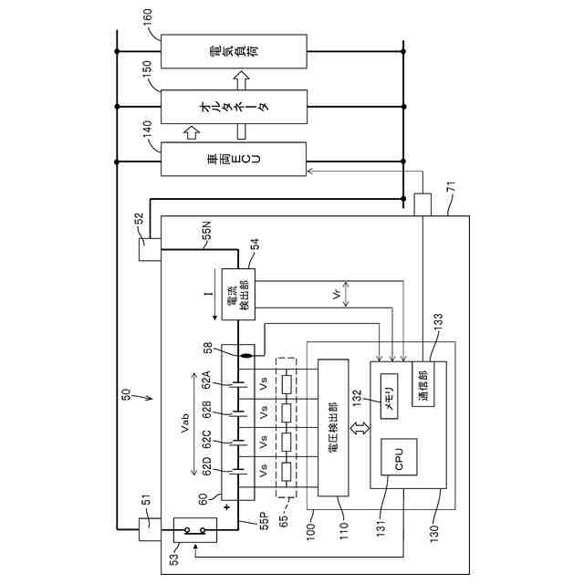 前記制御装置130は、充電中に発生するセル間の電圧差を解消するために実行された前記バランサ65のバランス放電量をセル62A~62Dごとに蓄積し、所定期間のバランス放電量の累積値である累積放電量が、他セル62よりも所定値以上大きいセル62を、異常劣化していると判断する。