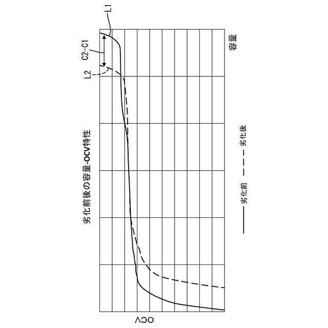 劣化前後のセルの容量-OCVの相関性を示すグラフ