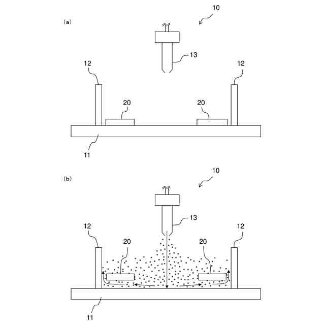 上記ガラススペーサを製造する際の成膜には、PVD(Physical Vapor Deposition)法、CVD(Chemical Vapor Deposition)法等が用いられる。しかし、これらの成膜方法を用いる場合、一般的には、スペーサを保持する部材(支持部材)がスペーサと接触する部分については成膜できないという問題がある。このため、保持部材による保持のためにスペーサの表面の一部が成膜されずに露出し、露出した部分からガラスの欠片が微粒子となって発塵する場合があった。また、露出部分を完全に無くすために、一度成膜したスペーサを成膜装置から取り出し、成膜された領域を保持部材で保持しつつ二度目の成膜を行うことも可能ではある。しかし、二度の成膜を行うため、保持部材と接触した場所と、それ以外の場所とで膜厚ムラが生じるという問題があった。さらに、成膜工程が煩雑となり、製造コストが増加するという問題があった。