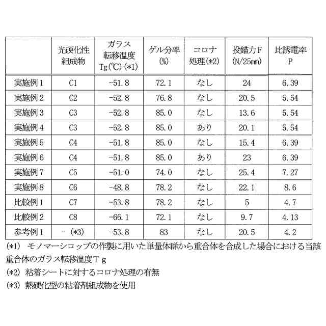 本発明者らは、上記の知見に基づいてさらに検討を進め、イソシアネート系架橋剤をほとんど含まない光硬化性組成物であっても、エーテル基含有単量体の配合量や、FOXの式を利用して算出されるガラス転移温度を適切に調整すれば、光硬化性組成物から形成された粘着シートと光学フィルムとの投錨力を大きい値に調整できることを見出し、本発明を完成するに至った。