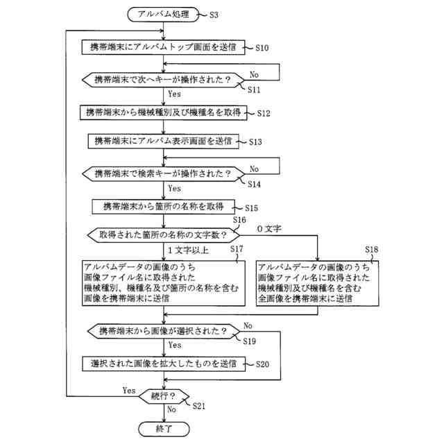 前記画像記憶手段から、前記箇所受信手段で取得された情報に基づいて前記所定の箇所に該当する周囲画像および詳細画像を検索する画像検索手段と、