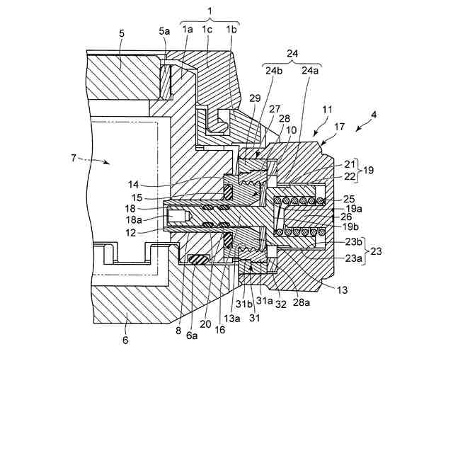 前記ロック機構は、前記ロック部材が前記回転伝達部材から前記ケース側に向けて抜け出すのを防ぐ抜止め部を備えている