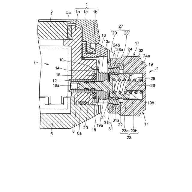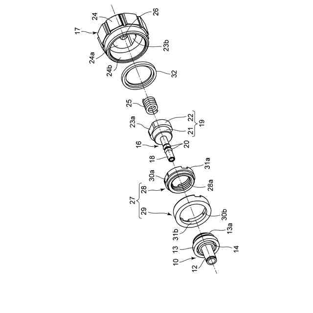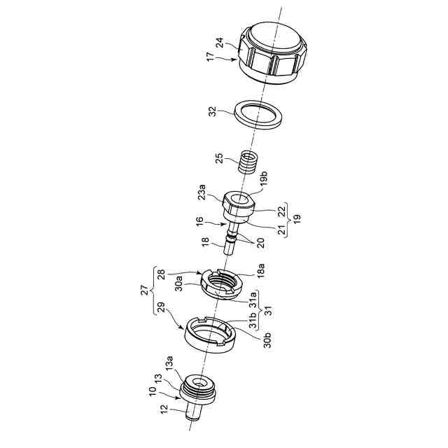 【解決手段】 少なくとも一部が腕時計ケース1の貫通孔8に挿入される筒状部材10と、この筒状部材10の内部から筒状部材10の外部に亘って配置される操作部材11と、この操作部材11を筒状部材10にロックするロック機構27と、を備え、ロック機構27は、操作部材11の回転操作によって筒状部材10にロックされるロック部材28と、このロック部材28とは別部材であって操作部材11の回転操作に応じてロック部材28を回転させる回転伝達部材29と、を備えている。従って、ロック部材28が筒状部材10にロックされた状態で、操作部材11が外部から衝撃を受けた際に、ロック部材28に対して回転伝達部材29を軸方向にスライドさせることができるので、衝撃によるロック機構27の破損を防ぐことができる。