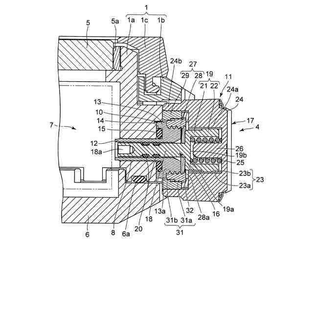 前記ロック機構の前記回転伝達部材および前記ロック部材とこれらが軸方向に対向する前記操作部材の前記操作頭部との間には、緩衝部材が設けられている