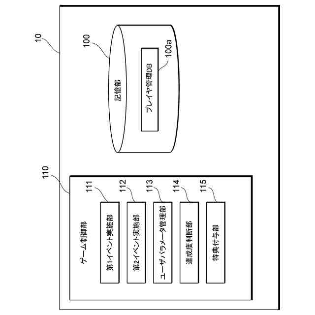 ゲームサーバ10は、例えば、プレイヤ(ユーザ)に関する各種情報を管理したり、ゲームの一部の処理を実行したりする等、端末20がゲームを提供する上でその一部の機能を担う装置である。ゲームサーバ10は、1又は複数の情報処理装置から構成されていてもよいし、仮想的なサーバ(クラウドサーバ等)を用いて構成されていてもよい。