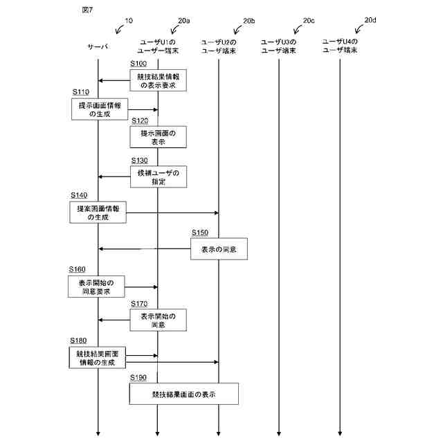 前記提案部は、前記表示要求に基づいて、複数のユーザに対して前記競技結果情報の表示を提案し、