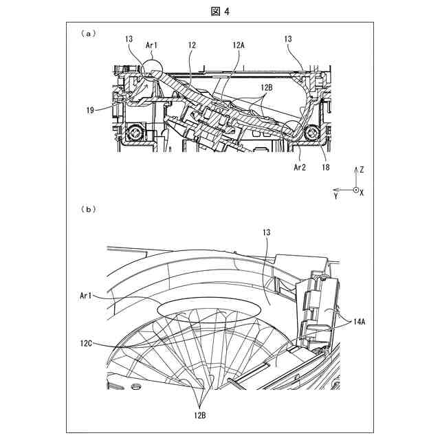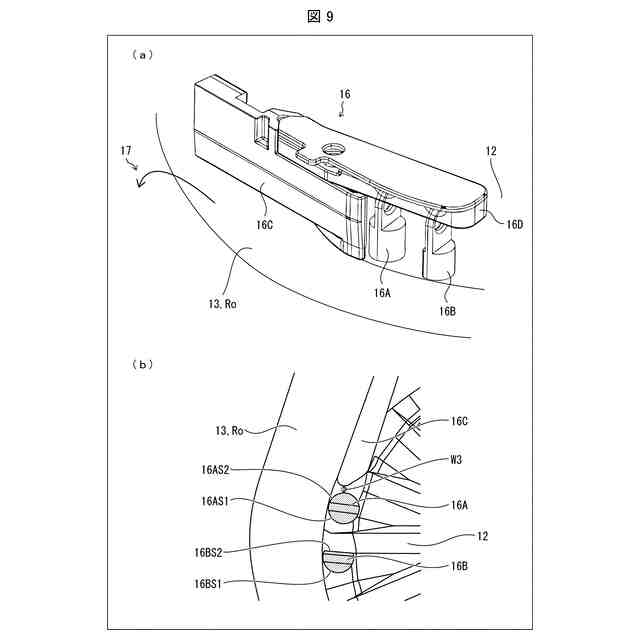 (a)は第2回転体の比較例を示す斜視図であり、(b)は第2回転体13の構成例を示す斜視図である。