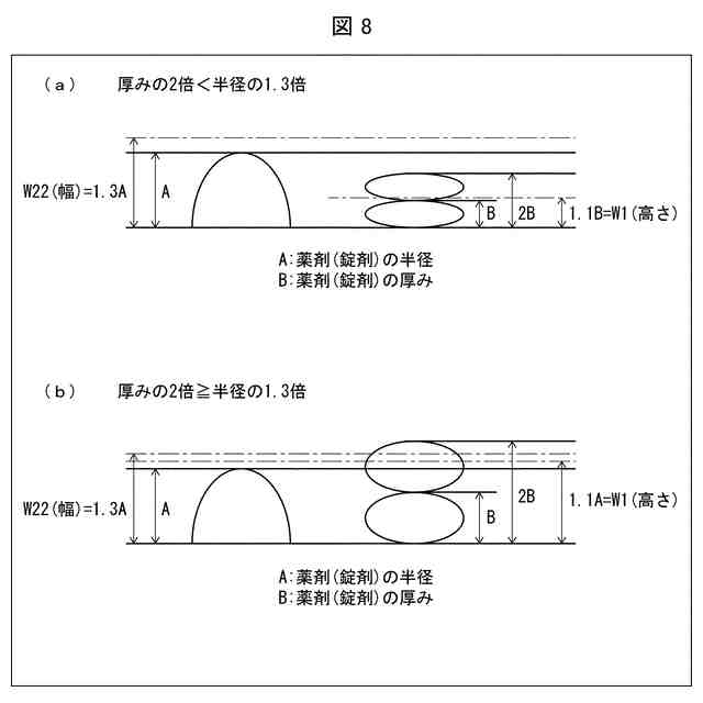 (a)及び(b)は、払出口付近における分割錠剤の重なり防止について説明するための図である。
