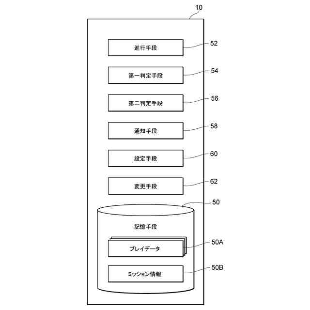 そして、当該プログラムは、コンピュータを、前記達成期限が到達する前において、前記プレイヤについて前記ミッションが達成されておらず、且つ、当該プレイヤによる当該ミッションの進捗度について所定条件が成立したか否かを判定する第一判定手段、前記第一判定手段の判定結果に基づいて、前記所定条件と異なるゲーム条件であって、前記プレイヤについて前記ゲームに関するゲーム条件が成立したか否かを判定する第二判定手段、及び、前記第二判定手段の判定結果に基づいて、前記ミッションが未達成であることを対応するプレイヤに通知する通知手段、として機能させる。