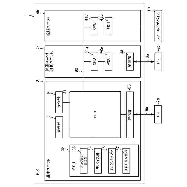 ところで、PLCの動作やPLCによって制御される産業機械の動作を監視するために、PLCが保持しているデータを収集して活用することが望まれている。PLCは、基本ユニット(CPUユニット)とそれに接続される拡張ユニットとを有している。基本ユニットは、ラダープログラムなどのユーザプログラムを実行することで拡張ユニットを制御する。拡張ユニットは基本ユニットからの命令にしたがって産業機械を制御し、制御結果を基本ユニットに返す。
