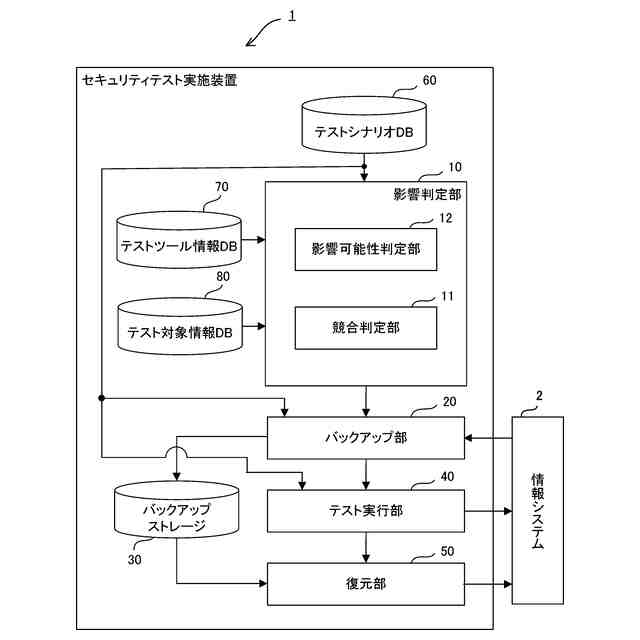 前記テストシナリオについての識別情報と、前記テストシナリオに従った攻撃に使用されるテストツールプログラムについての前記可能性の有無を示す影響可能性情報とが前記テストシナリオ毎に対応付けられて格納されているテストシナリオデータベースを更に備え、