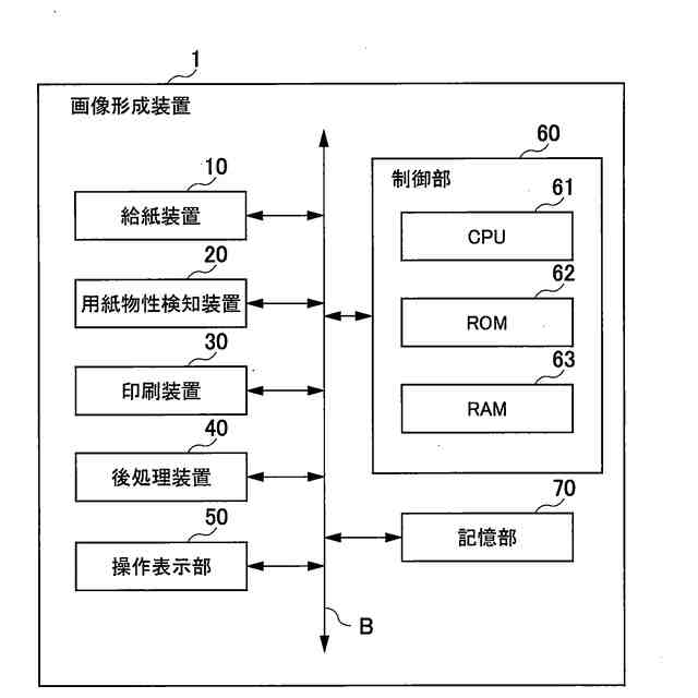 【解決手段】画像形成装置1は、異なる種類の記録材がセットとなっている用紙束に対して物性を検知する用紙物性検知装置20と、用紙物性検知装置20により検知された用紙束に含まれる記録材の物性値に対応する用紙搬送条件及び画像形成条件を設定する制御部60と、を備える。