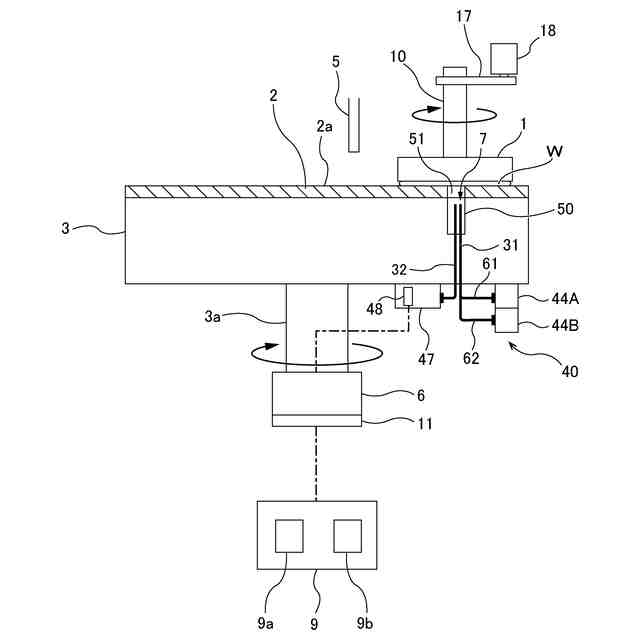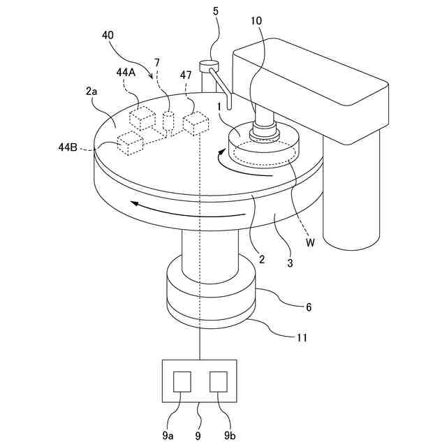 などの絶縁膜を研磨する工程や、銅、タングステンなどの金属膜を研磨する工程などの様々な工程が含まれる。ウェーハの研磨は研磨装置を使用して行われる。研磨装置は、一般に、研磨パッドを支持する研磨テーブルと、ウェーハを研磨パットに押し付ける研磨ヘッドと、スラリーを研磨パッド上に供給するスラリー供給ノズルを備えている。研磨テーブルを回転させながら、研磨テーブル上の研磨パッドにスラリーが供給され、研磨ヘッドは、ウェーハを研磨パットに押し付ける。ウェーハは、スラリーの存在下で研磨パッドと摺接される。ウェーハの表面は、スラリーの化学的作用と、スラリーに含まれる砥粒および研磨パッドの機械的作用との組み合わせにより平坦化される。
