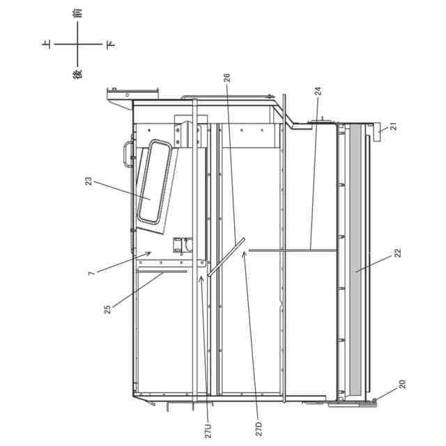 請求項2記載の発明は、仕切り板24が貯留タンク7の底部に設けた穀粒を排出する排出搬送装置22の上部から貯留タンク7の上下中間位置付近に亘る上下高さで貯留タンク7を前後または左右に仕切る請求項1に記載のコンバインである。