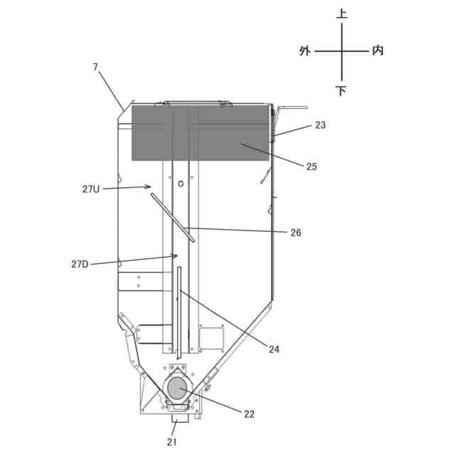 然しながら、貯留が始まった初期の穀粒量が少ないうちは、穀粒がグレンタンクの底部に拡散して入り込むと、ロードセルが正確に重量を検出できない課題があった。