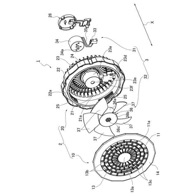 前記ファン本体は、前記第2ケースに保持された電動モータによって回転させられて前記吸込口から前記吐出口に向けて送風する複数の羽根を有し、