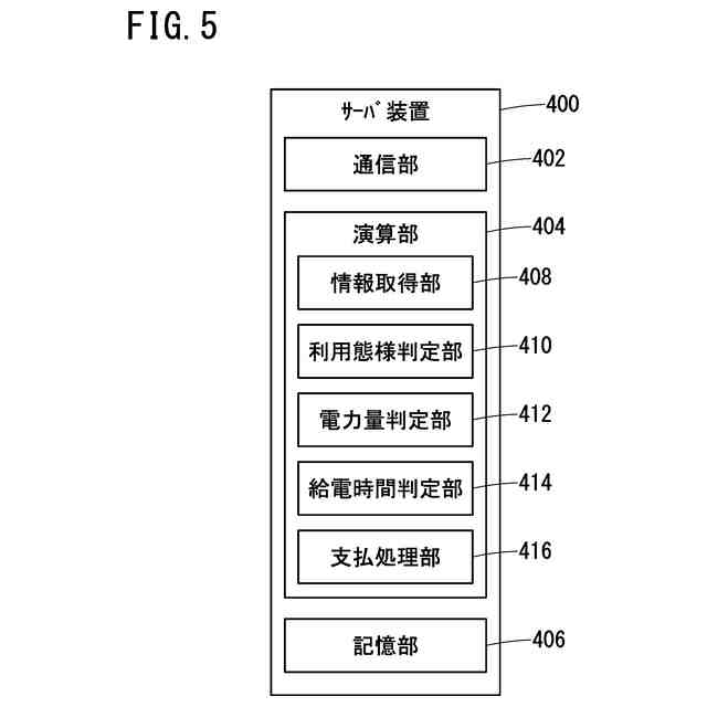 前記給電時間判定部によって判定された前記給電時間に応じた対価を前記ユーザに対して支払うための処理を行う支払処理部と、