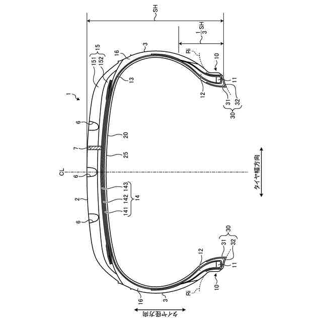 図6は、図1に示すタイヤのビード部を拡大して示す図である。