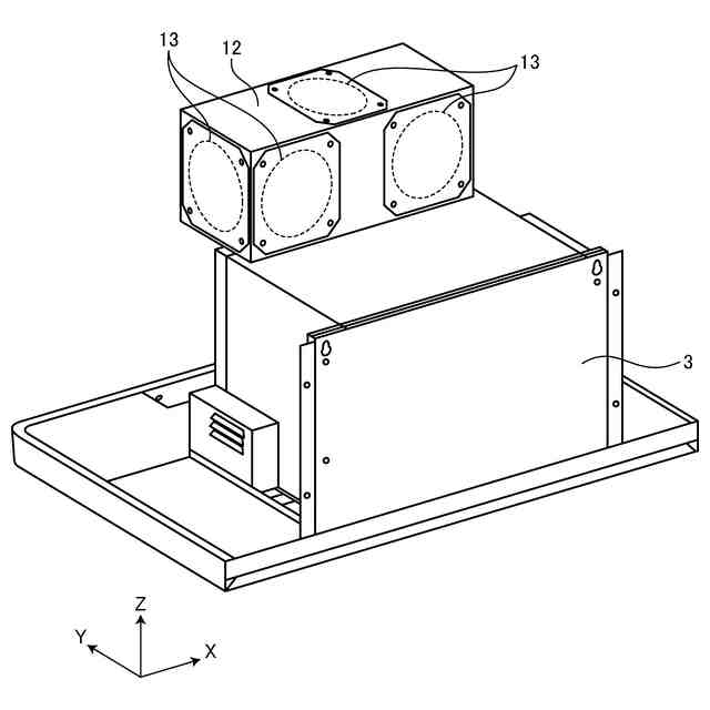 前記筐体の天面の上部に固定され、前面に給気口が形成され、給気ダクトが接続される給気ダクト接続口が複数の面に形成された直方体状の給気チャンバーと、