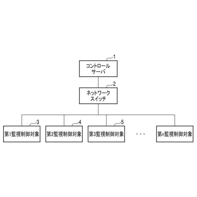 コントロールサーバ1と、ネットワークスイッチ2と、第1監視制御対象3と、第2監視制御対象4と、第3監視制御対象5と、その他の監視制御対象とは、相互に通信可能に有線で接続されている。なお、コントロールサーバ1と、ネットワークスイッチ2と、第1監視制御対象3と、第2監視制御対象4と、第3監視制御対象5と、その他の監視制御対象とが、相互に通信可能に無線で接続されていてもよい。