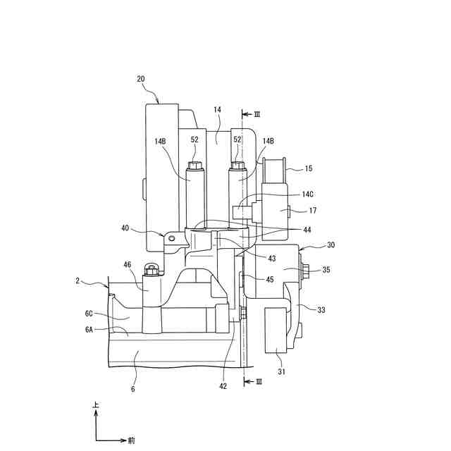 図3は、図2に示すエンジンのベルト伝動装置を備えたエンジンのIII-III方向の矢視断面図である。