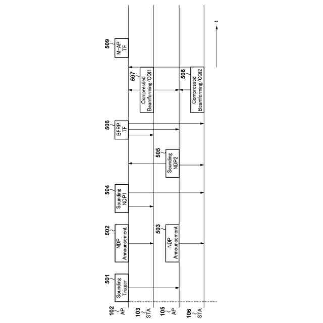 IEEE802.11be規格(以下11be規格と略す)ではスループット向上を実現するために、複数のアクセスポイント(AP)が協調動作するマルチAP協調構成が新たに規定された。そして、IEEE802.11bn規格(以下11bn規格と略す)ではマルチAP協調構成における通信の信頼性向上が検討されている。協調構成を効率的に運用するためには、アクセスポイント(AP)とステーション(STA)との間で、サウンディング手順をおこなうのが一般的である。しかしながら、現在の11be規格では、マルチAP協調構成におけるサウンディング手順については規定されていない。